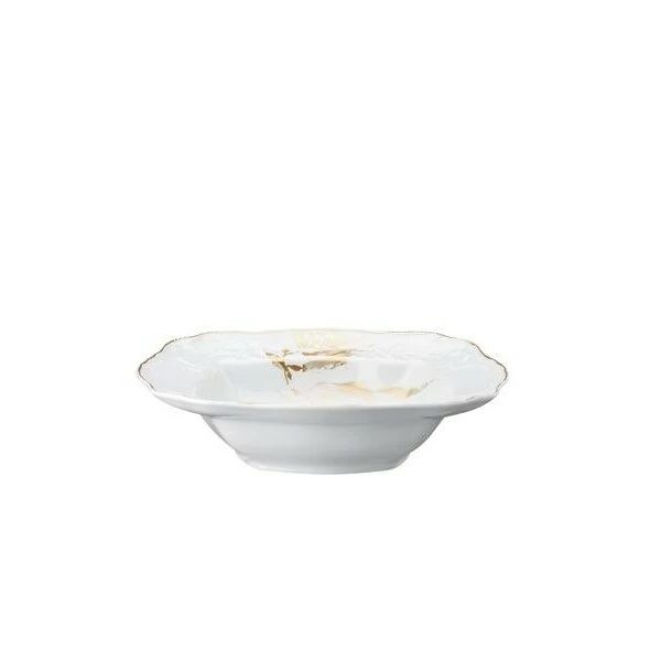 Die hübsche Schüssel der Geschirrserie Heritage Midas von Rosenthal überzeugt durch das wirkungsvolle Camouflage-Dekor, das sich mit einem dreidimensionalen Look über das ruhige Weiß des Porzellans zieht. In Verbindung mit den Zierelementen des Oberflächenreliefs auf dem Rand des Geschirrstücks entsteht eine in sich schlüssige Harmonie. Mit einem goldweißen Fundament greifen Ihre Gäste definitiv gerne zu.